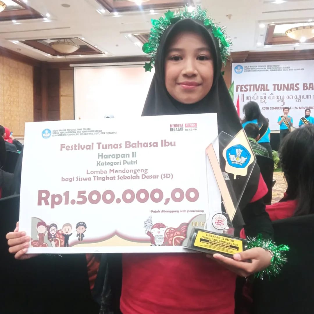 Senin, 27 November 2023, SD Negeri Pajomblangan Kecamatan Kedungwuni Kabupaten Pekalongan, menoreh prestasi yang membanggakan dalam ajang Festival Tunas Bahasa Ibu (FTBI) Tingkat Provinsi Jawa Tengah. Dalam ajang tersebut berhasil meraih juara harapan 2 kategori mendongeng putri atas nama Anti Nur Ainayya siswa kelas 6.